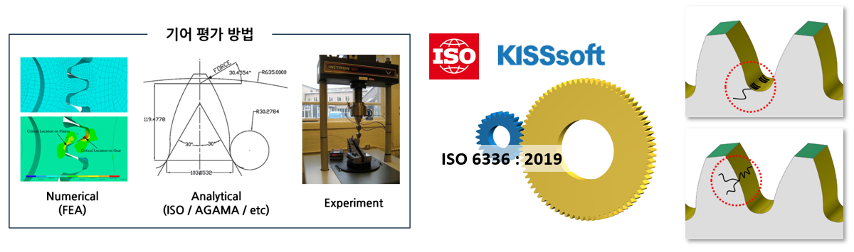 - ISO 6336, AGMA, DIN 등 다양한 규격을 이용해 여러 요소를 고려하여 기어의 강도와 수명분석이 가능함.