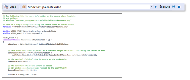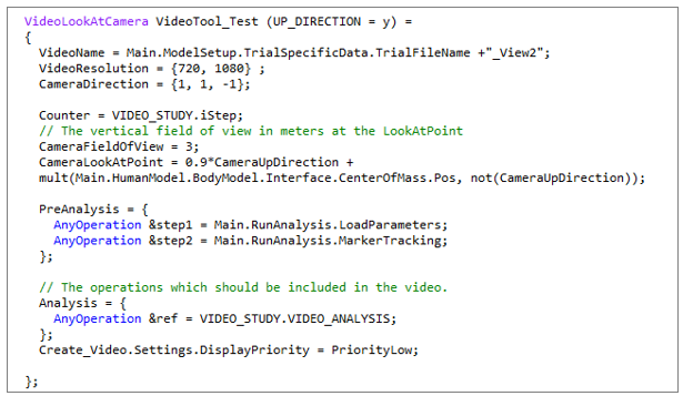 - CreateVideo.any파일 내에 VideoLookAtCamera 클래스 템플릿을 이용해 출력되는 동영상의 화각, 해상도 등의 설정이 가능함.