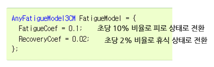 - 이 전환 속도를 결정하는 변수가 FatigueCoef (피로 계수) - 회복 (Recovery):