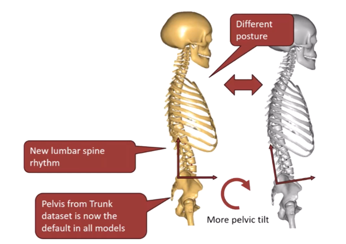 - 골반 기울기 및 흉곽 방향 변경: 골반의 기본 기울기(Pelvic tilt)와 흉곽(Thorax)의 중립 방향이 실제 생체 역학적 기준에 더 부합하도록 업데이트.