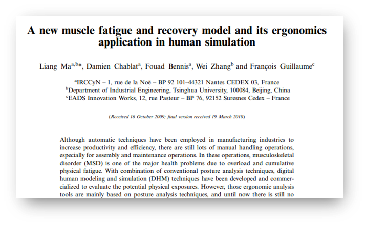 - Xia and Frey Law(2008) 연구논문의 근육 피로도 모델(3-Compartment Model)을 AMS에 구현.근육을 구성하는 운동 단위(Motor units)를 세 가지 그룹으로 나누어, 근육에 남아있는 잔여 피로도를 계산함.
