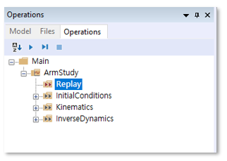 애니메니션 결과를 확인하기 위해서는 Operation Tree에서 Study 폴더 내에 Replay를 선택하면 Replay 툴바가 활성화가 됩니다.
