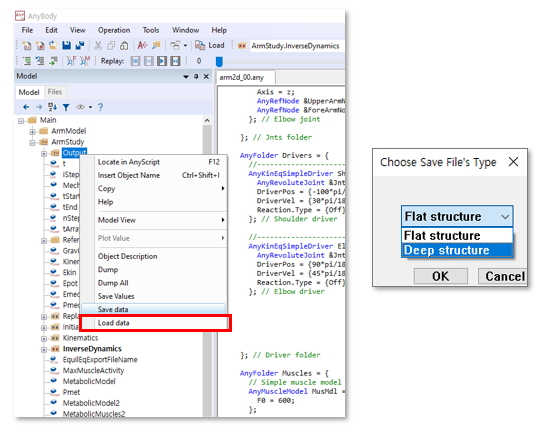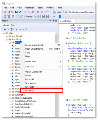 - Model Tree에서 Study 폴더 내의 Output 을 선택 후 마우스 우클릭하여 Load data를 선택