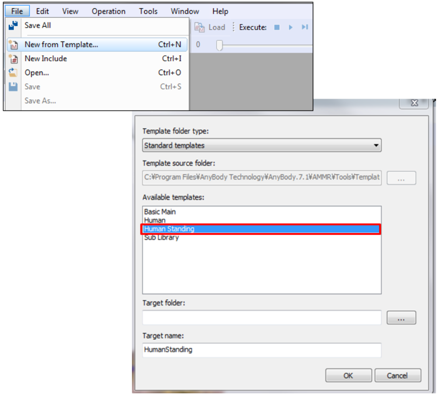 먼저 Human Standing 템플릿을 선택하고 Load하면 인체 모델이 나타납니다.
