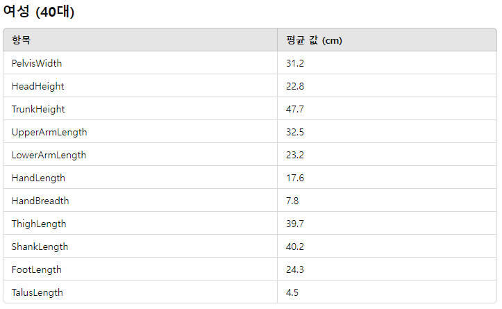 참고로, 아래의 사이트에서 한국인 표준 체형 정보를 확인할 수 있습니다.