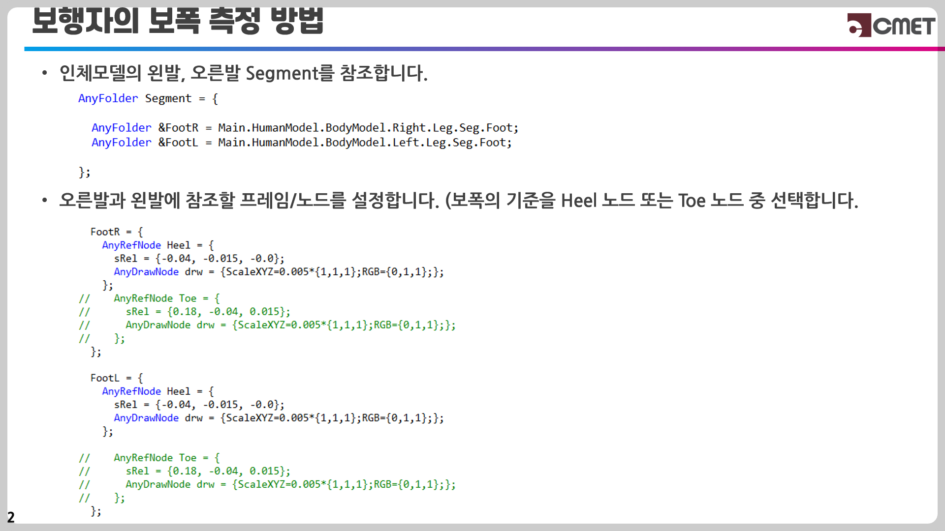 - 오른발의 Heel 노드와 왼발의 Heel 노드를 정의합니다.