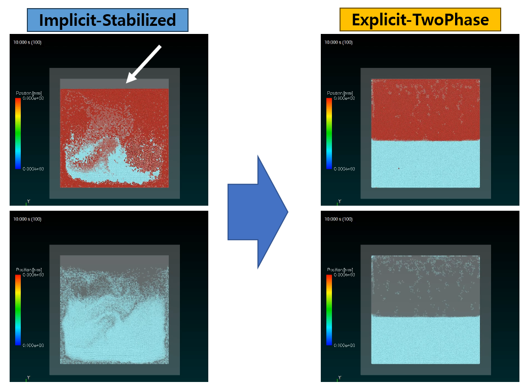 - 기존 MPS솔버는 밀도 차이가 큰 다상 유동해석에 한계가 있었습니다.