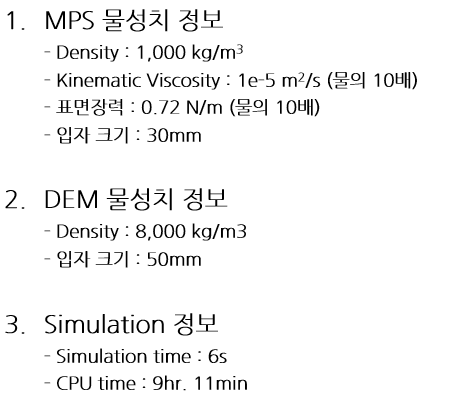 - 머드를 MPS입자와 DEM입자를 혼합하여 모델링하고 언더캐리지를 주행한 해석 사례