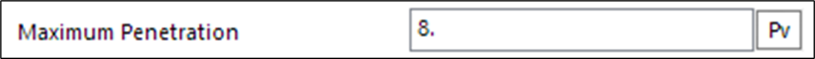 - Contact Property에서 Maximum Penetration은 Contact 계산이 수행되는 Patch의 깊이에 대한 설정으로서 Penetration이 이 값보다 더 크게 발생하면 Contact Event가 발생하지 않는다.