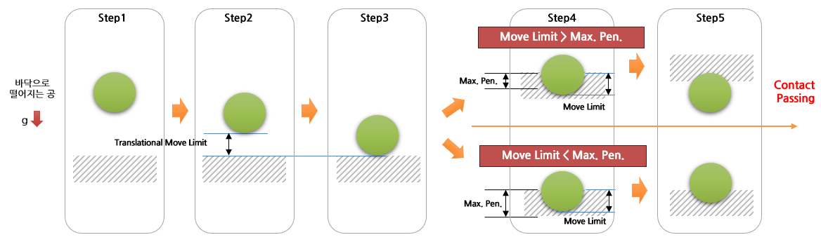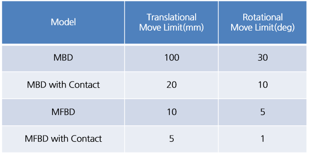 - Contact Maximum Penetraiton은 Move Limit 보다 큰 값을 가져야 한다.
