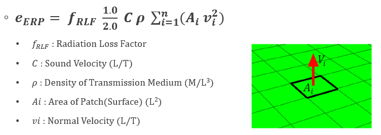 - ERP는 구조전달음 (Structure borne noise)를 평가하는데 많이 활용되는 값으로 아래와 같은 수식을 통해 계산한다.