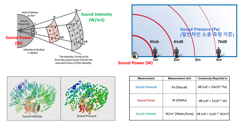 - Sound power(음향 출력) : 음원이 방출하는 단위 시간당 에너지의 총량