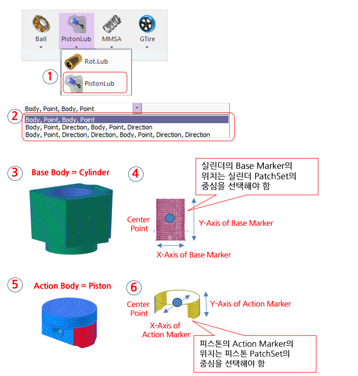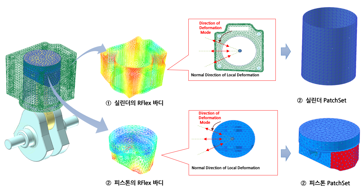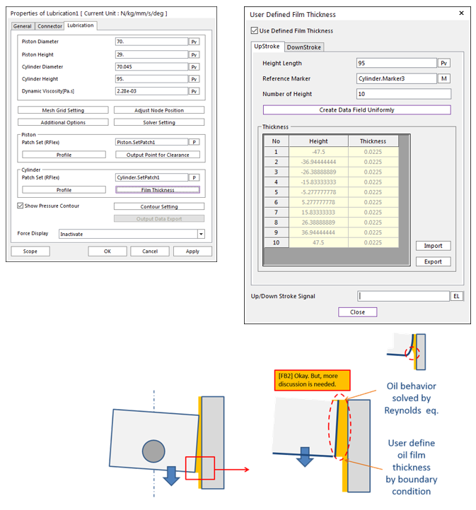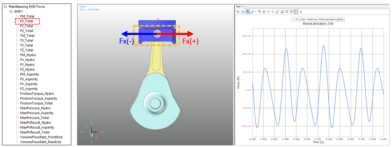 - 피스톤의 고속 병진 운동 시, 피스톤과 실린더 사이의 접촉면에 대한 유체 윤활 해석을 지원한다.