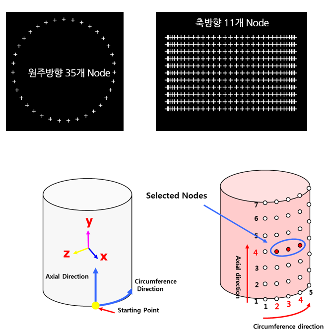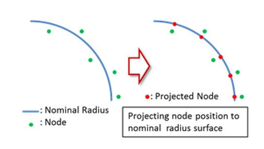 - RFlex Body의 경우, 메시 품질에 따라 노드의 위치가 달라질 수 있으므로, 정확한 EHD결과를 위해서는 반드시 ‘nominal radius’를 고려하여 노드의 위치를 조정하는 옵션을 사용해야 한다.