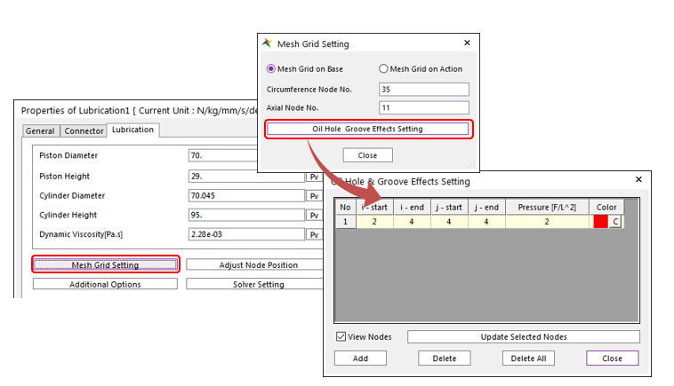 - 오일 Hole과 Groove 효과를 고려할 수 있다.